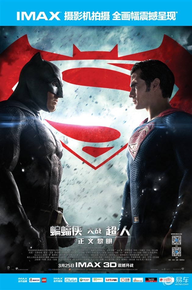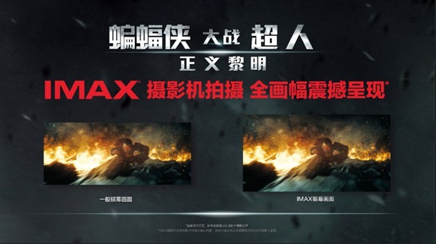 3月25日,IMAX 3D版《蝙蝠侠大战超人:正义黎明》将正式登陆中国。此部影片部分片段采用IMAX摄影机拍摄,两大超级英雄对战的恢弘巨制将成为2016年IMAX银幕上最不能错过的作品之一。届时在IMAX影院中,这些通过IMAX摄影机捕捉的精彩画面将为两位超级英雄的粉丝和IMAX影迷们带来顶天立地的震撼视觉和分秒燃爆的观影体验。