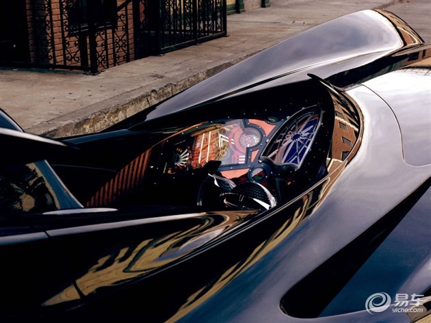 这辆蝙蝠车的座舱采用了单座开篷式设计,灵感来源于老式赛车。和第二代战车相比,它的造型依然很张扬,但车身显得素了很多。不同于前两代车型的巨大喷气式排气筒,这辆车的车尾设计了呈V字型的6个小喷射排气筒。