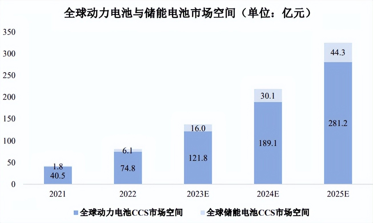 根据中信证券研究所预计,2025 年全球动力电池 CCS 市场空间将达到 281.2亿元,2021-2025 年复合增长率达到 62.33%。此外,FPC 在电池中对传统线束的替代还有望进一步延伸至储能领域,进一步推动 FPC 市场需求的发展,根据中信证券研究所预计,2021 年储能电池 CCS 市场空间为 1.8 亿元,到 2025 年市场空间将达到 44.3 亿元,2021-2025 年复合增长率为 122.73%。