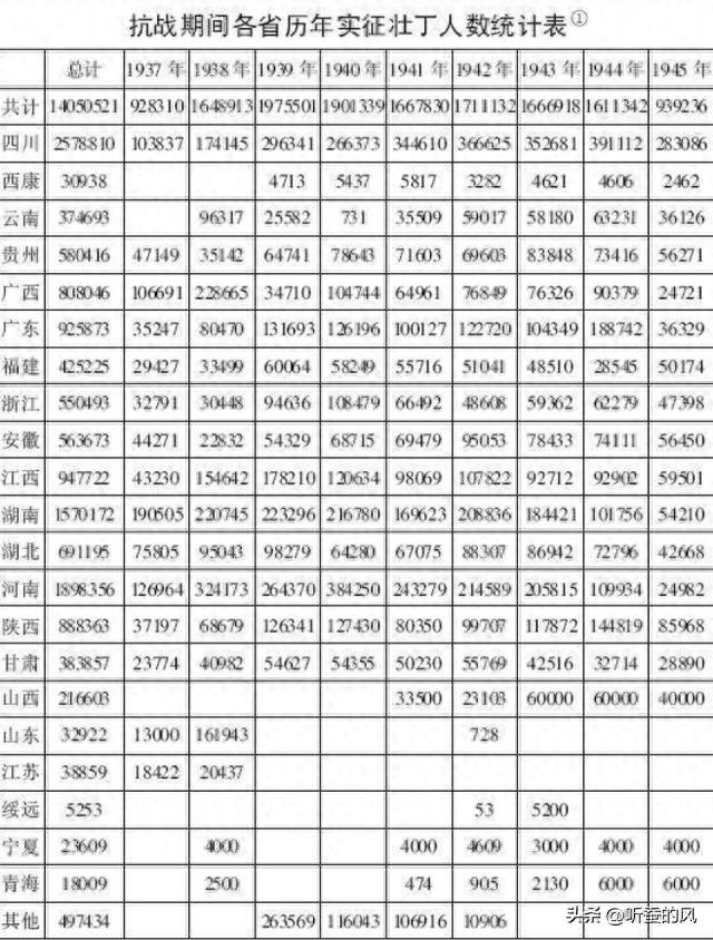1981年,国防部史政编译局出版了《八年抗战之经过》一书,书中统计了抗战时期全国各第出兵的人数。广西出兵81万,四川出兵257万,湖南出兵157万,广东出兵92万。大家所熟悉的桂军、川军、湘军甚至粤军等都被疯狂歌颂。但是,比广西出兵更多的还有陕西89万,江西95万,河南190万。