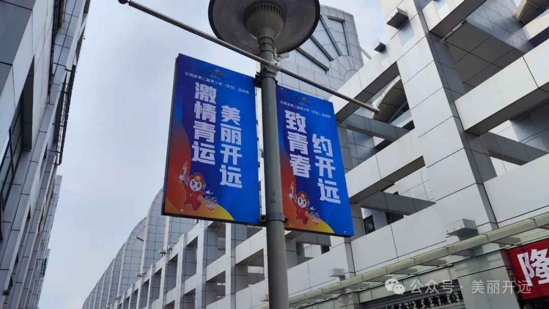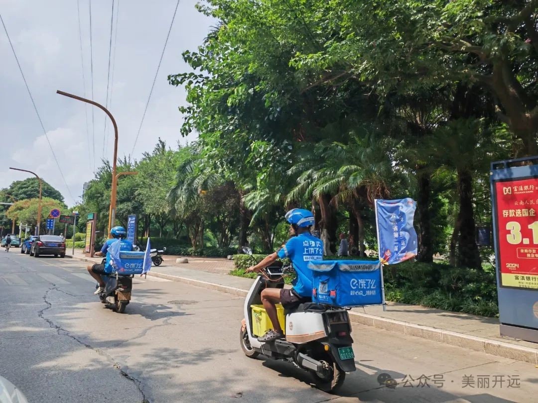 除了安装形式多样的宣传标语外,开远还向“美团”“饿了么”外卖骑手发放宣传刀旗,在公交车、出租车上粘贴宣传画,让省“二青会” 的氛围随着流动的车辆,走遍开远的每一个角落。