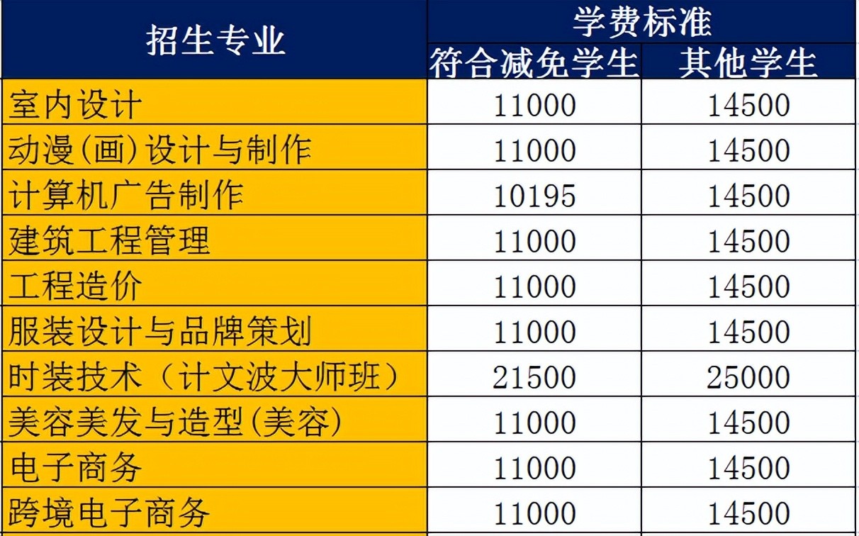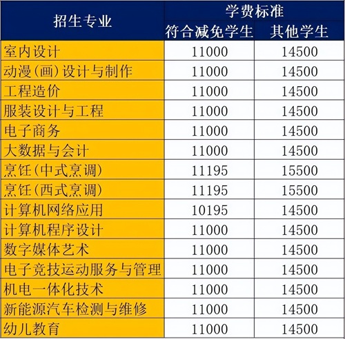 按照粤港澳大湾区经济产业发展的需求,开设了人工智能技术应用、3D打印技术、电子竞技管理、新媒体运营、新能源汽车、跨境电子商务、幼儿教育等热门专业,以及时装技术、服装设计、烹饪、西餐、会计、工程造价、室内设计、计算机程序设计等特色专业。