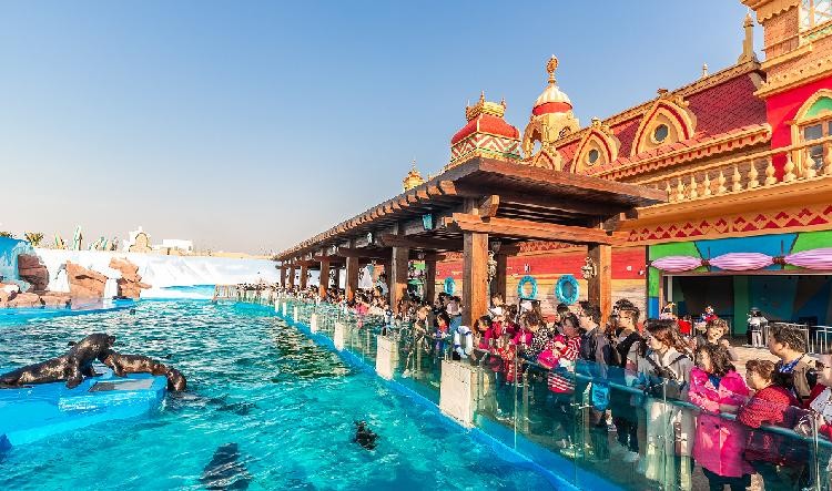 园区一共分为五大主题区域,分别是人鱼海湾、极地小镇、冰雪王国、海底奇域和海洋部落。共有南极企鹅馆、海兽探秘馆、冰山北极馆、珊瑚水母馆、火山鲸鲨馆、海底世界馆六个大型动物展示场馆,可以近距离接触海豚、海狮、鲨鱼、企鹅、北极熊等可爱的海洋动物。除了人鱼海湾,每个区域都有值得一看的表演和项目。话不多说,直接上图。