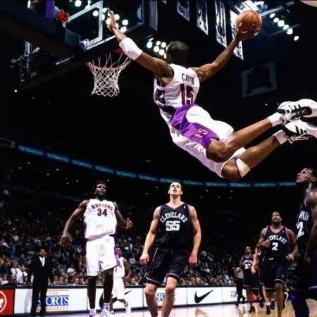 谈到文斯卡特,大家对他印象最深的就是,能飞能跳及爆炸扣篮,2000年全明星赛扣篮大赛冠军,连续三年以全明星票王身份入选NBA全明星阵容,足见球迷对文斯卡特的喜爱,曾经的四大分卫之一,风靡全球,2000年悉尼奥运会死亡隔扣法国中锋,被称为篮球历史上最为惊人的扣篮,“卡特用他惊世骇俗的灌篮表演为猛龙赢得了世界范围内的知名度,并为多伦多的球馆争取了大批的球迷”前NBA球星里奥劳汀斯说道,“史上最伟大扣篮王之一”华盛顿媒体形容等等,足以见证文斯卡特的伟大,职业生涯转辗多支球队,除了扣篮,犀利的三分也是文斯卡特的取分利器,职业生涯多次上演绝杀,虽然没有染指总冠军,但是文斯卡特,还没有放弃对篮球的热爱,2018年10月18日,在亚特兰大老鹰队对阵纽约尼克斯的比赛中,文斯卡特首发出场,41岁,264天,是NBA历史上第二年长的揭幕战首发球员。