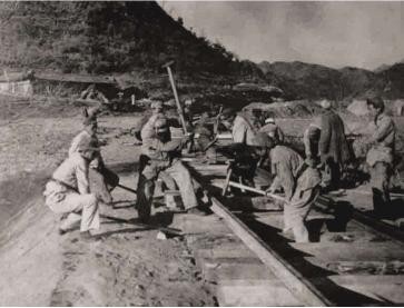 抗美援朝时期志愿军铁道兵正在抓紧抢修铁路