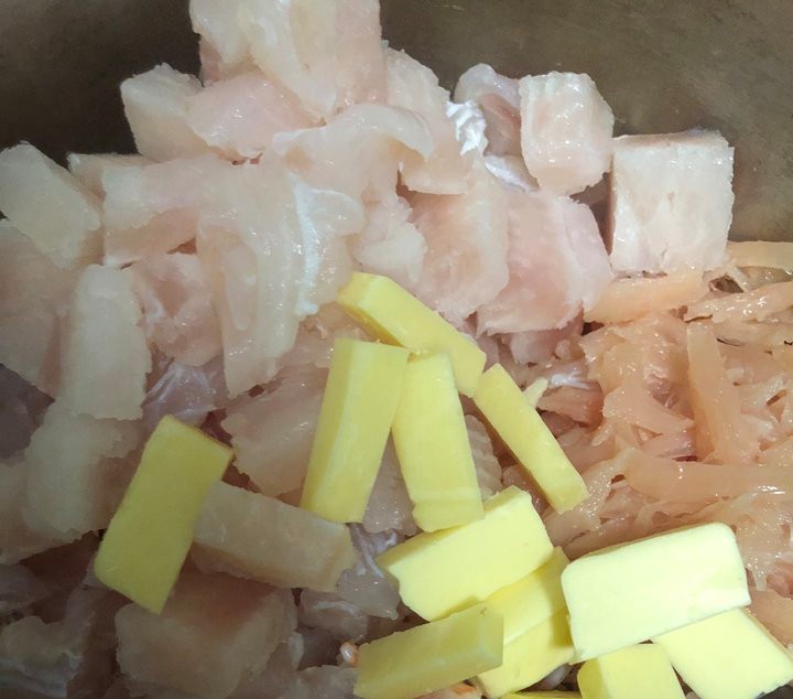 三文鱼110克(可替换),牛肉100克(羊肉,猪肉都行)鸡肉450克