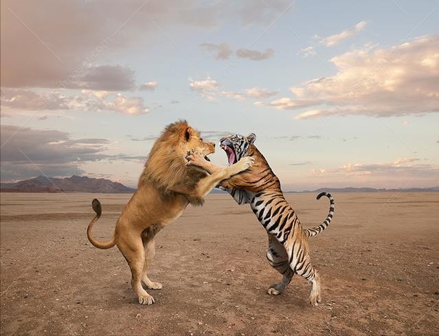 巴巴里狮作为最大的狮子亚种,成年雄狮的平均体型可以达到体长2.8米,肩高1米,体重270到300公斤左右,有记录以来的最大的巴巴里狮是由英国人人工饲养的雄性,名叫辛巴,体重在375公斤左右。而老虎中最大的种类东北虎的体型则与之相似,大部分东北虎体型都不如成年大型巴巴里狮,论战斗力而言,巴巴里狮常年独居,四肢粗短,十分有力,单打独斗的技巧更是十分娴熟,加上其头部和腹部浓密深厚的毛发,如同防狼项圈一般,使其战斗力大增,在势均力敌的战斗中,巴巴里狮凭借身体条件就能够打败东北虎。
