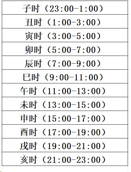 古代将一日分为12时辰,一个时辰为两个小时,分别用十二地支表示。时柱的地支是固定不变的,时天干可以由日天干推算。