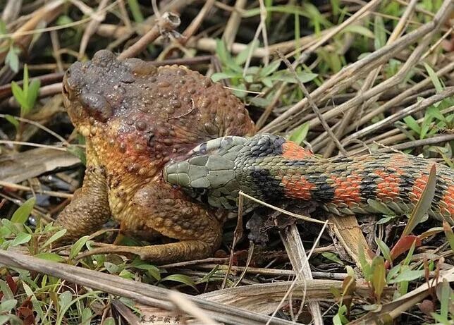 虎斑颈槽蛇在日本有几起咬伤致死病例。