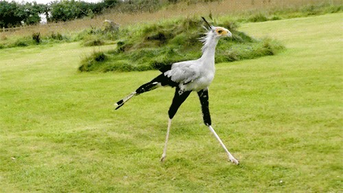 蛇鹫可是出了名的“高颜值、大长腿”。它身形高大,直立时身高可达1.5米,体长为1.2-1.5米。而它最引人注目的,就要数那双挺拔的大长腿了:上半部分长着黑色的短绒毛,下半部分纤细修长,走起路来,好像穿着一条塑形紧身裤一样优雅。