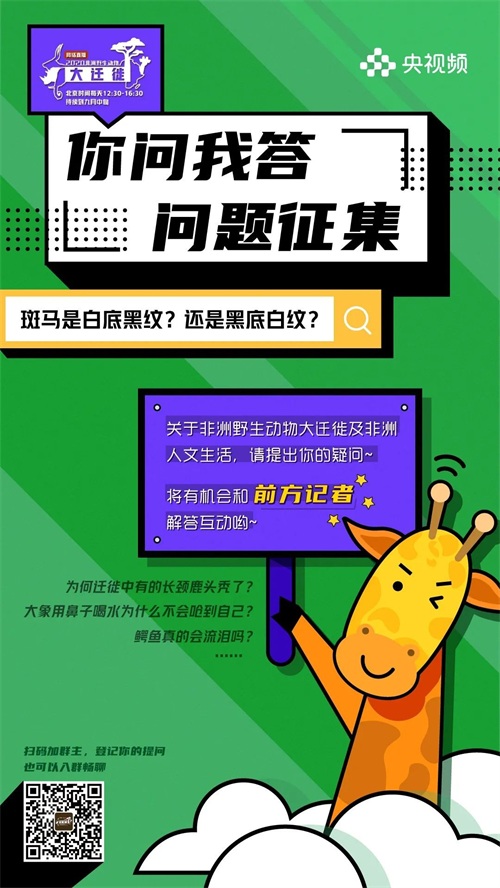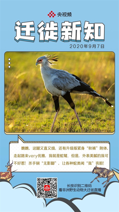 “野生动物大迁徙”正在上演!关于野生动物,你了解多少?“央视频”微博、微信等平台推出【迁徙新知】特别策划,每天通过问答的形式为小伙伴们科普野生动物知识,知识点都超“新鲜”!够“新奇”!