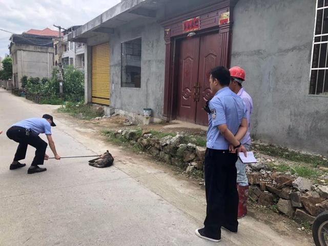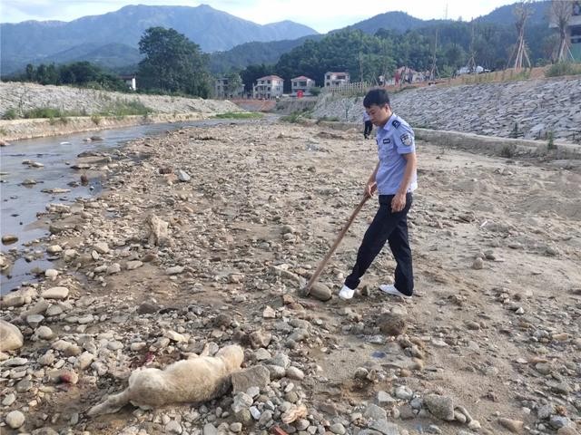 6月19日8时许,泉江派出所接到群众报警称,泉江镇良头村良头桥头附近出现一条疯狗,见人就咬,严重威胁到周边群众的人生安全。