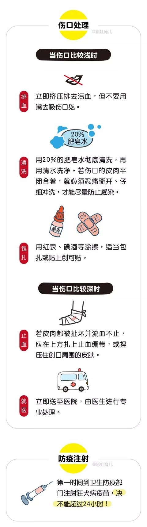 此部位的冲击会让狗非常疼,从潜意识里产生害怕心理,最容易松口跑开记住!动作一定要快、准、狠!万一被咬伤记得这样处理。