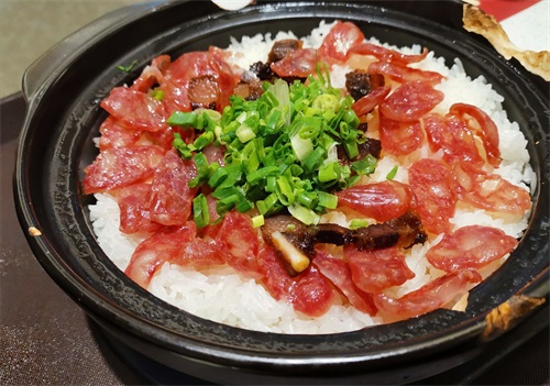 还有广式煲仔饭也是值得一试的菜品。腊肉与腊肠混合在泰香米里,连米饭都透着肉香味。最好吃的就是下面的锅巴,脆脆的口感,满满的油香四溢。