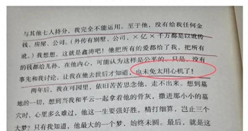 琼瑶虽然得到了平鑫涛的爱,但在遗产分配上却并未得到太多实际利益。