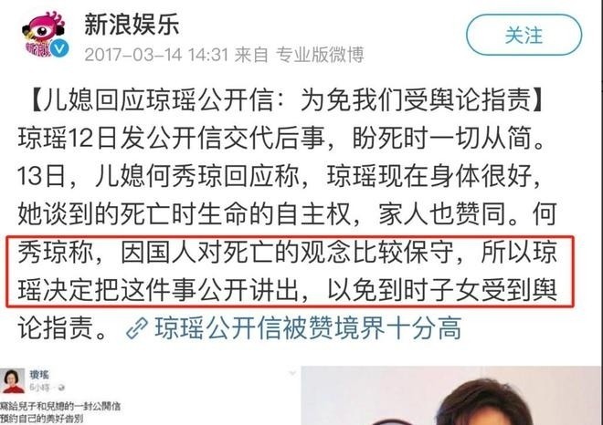 这一举动被一些人视为对琼瑶的-背叛-,但也有人理解他的孝心。