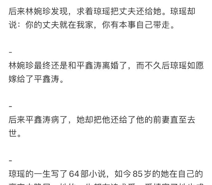 琼瑶和平鑫涛的爱情故事充满了争议。