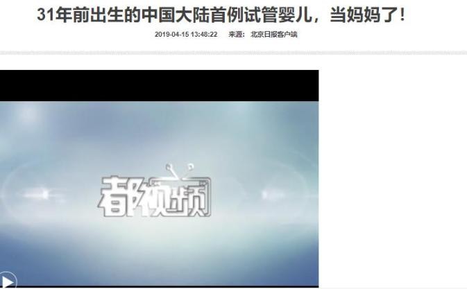 信息来源:北京日报客户端 2019-4-15 31年前出生的中国大陆首例试管婴儿,当妈妈了!