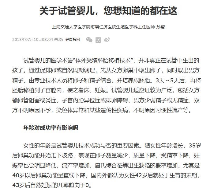 信息来源:健康报网 2018-7-10 关于试管婴儿,您想知道的都在这