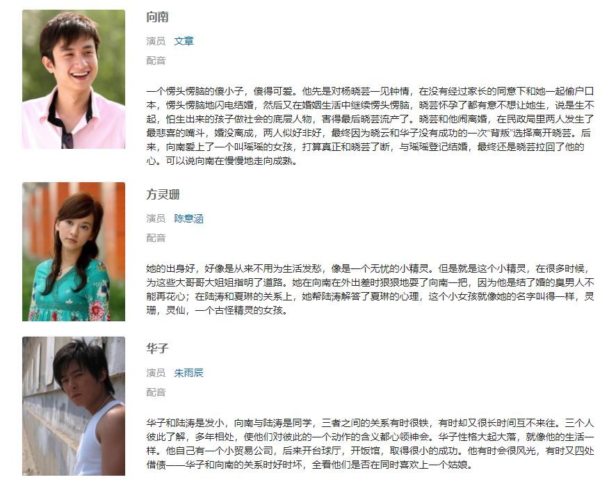 剧中文章饰演的向南懂得,什么是爱情,什么是责任,什么是宽容,什么是他所要为之奋斗的。刚开始急躁着就和杨晓芸结婚了,不管之后他们合不合适,向南总有挥之不去的责任,也正是向南的 宽容和责任,让杨晓芸彻底明白了自己的错误,她懂得了自己离不开向南,于是杨晓芸从一个幼稚、爱慕虚荣的女孩成长为一个成熟、懂得婚姻责任的女人。我想他们会苦尽甘来过上幸福的生活的。