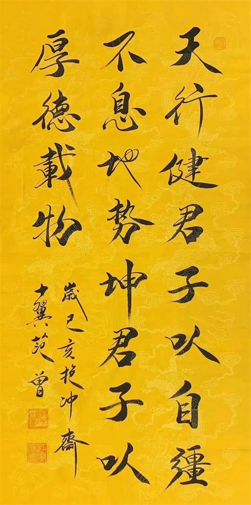 范曾先生的书法,还有一大特点就是,结字俊朗,清新隽逸,大气凝重,独树一帜。在结构上力求方正,在方正中求险绝,笔拙墨秀,灵动舒畅,美丽可观。