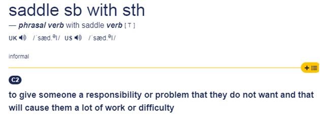 saddle sb with sth 使(某人)负担,使(某人)承担(重任或难题)