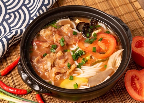 8. 云南过桥米线(云南):由鸡汤、米线和各种配料构成,以鲜嫩的汤底和多种食材搭配而成的独特口感,是云南的特色美食之一。