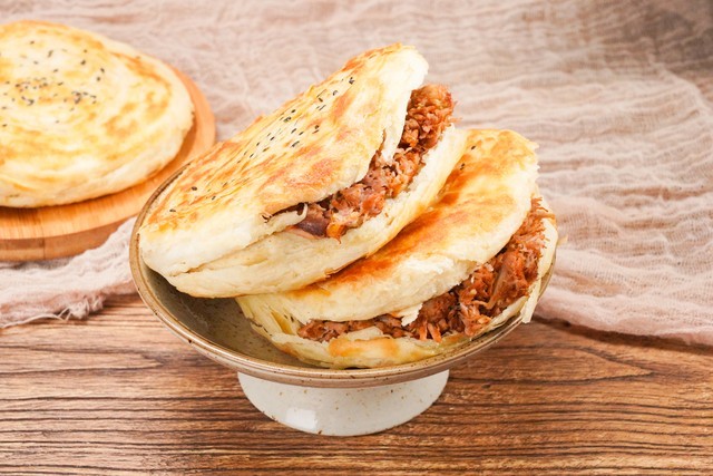 5. 西安肉夹馍(陕西):将烤制的馍儿切开,夹入猪肉和各种配料,鲜嫩多汁,是西安的经典美食之一。